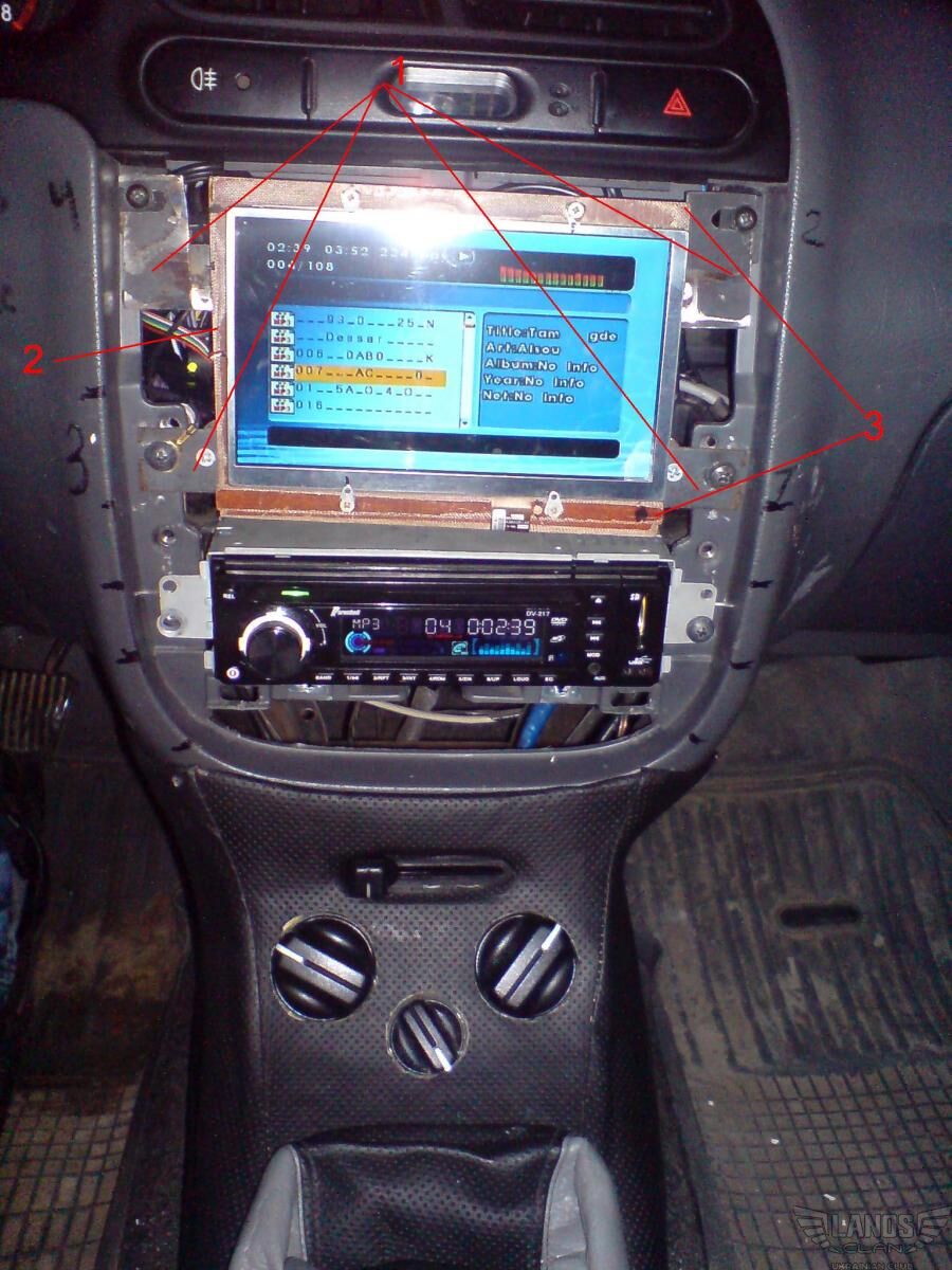 4 - выгнул железяку - (4), к которой прикрутил заднюю панель телека с платой - (5),