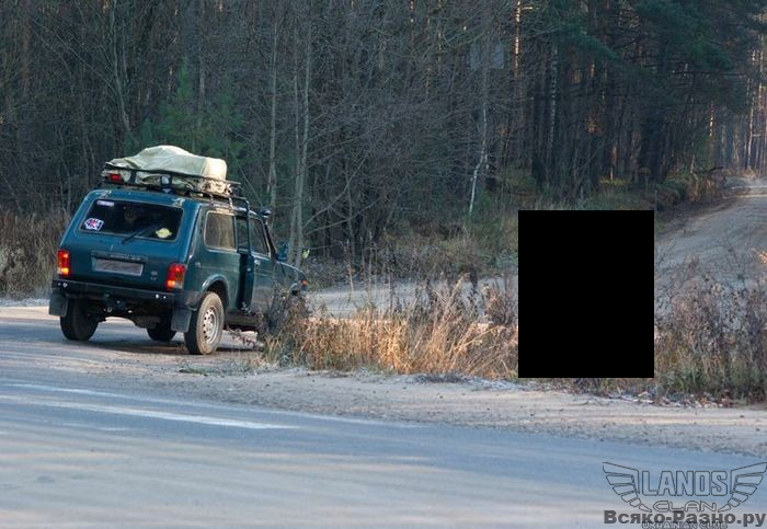 Я бы предпочёл разместиться слева от автомобиля,в лесу))