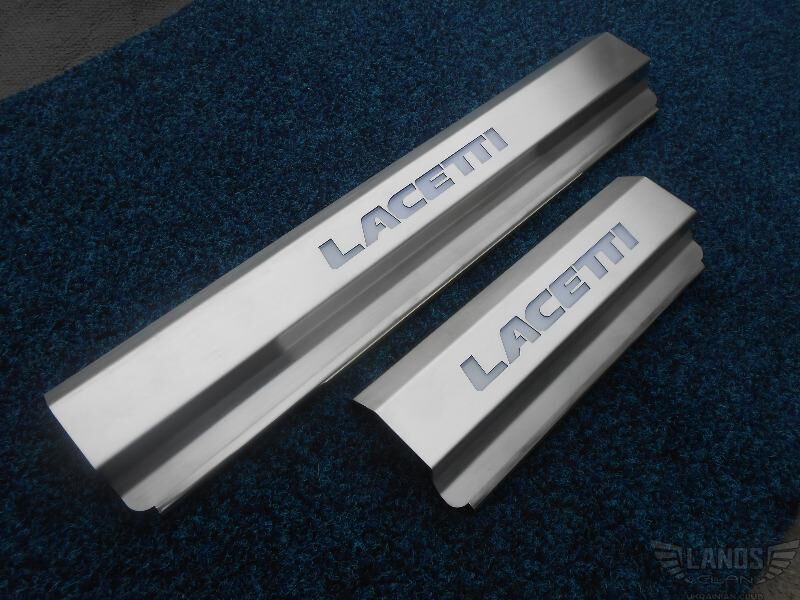 Вниманию всех владельцев авто Chevrolet Lacetti и других авто! Предлагаем Вам наши накладки на пороги, подготовленные под подсветку. Наша компания единственная на территории Украины занимается производством эксклюзивных накладок на порожки, подготовленных под подсветку. Подготовка под подсветку заключается в то, что наши пороги производятся со сквозным вырезанным лазером текстом или логотипом и с соответствующими отверстиям вставками из оргстекла.