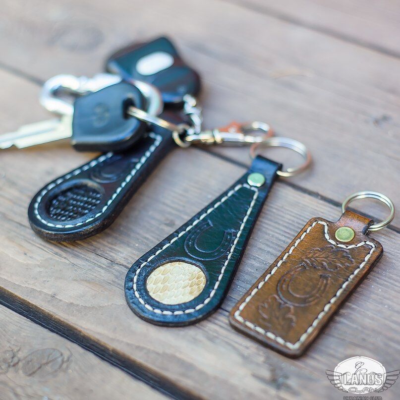 Приятные мелочи. Брелоки со вставкой кожи игуаны и питона.