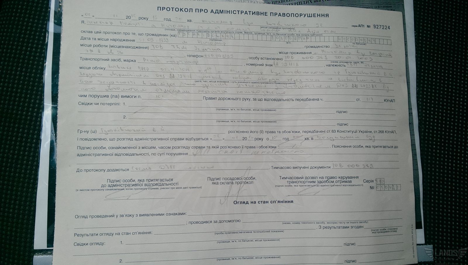 Інформація про фото протокол