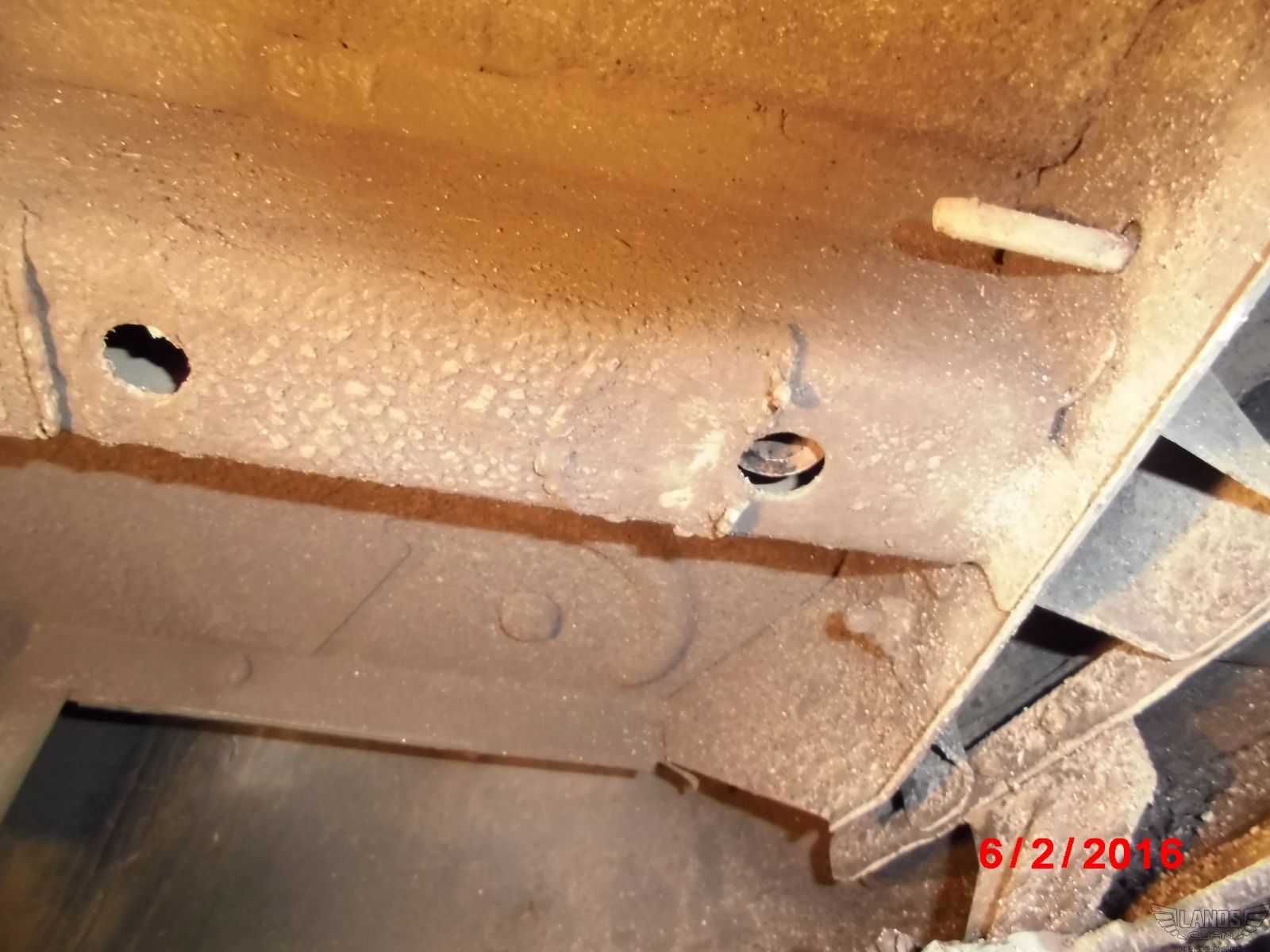 С низу видно что распорная втулка чуть-чуть не достаёт лонжерон. Это хорошо. При затяжке верхние и нижние крепления фаркопа, плотно прижмутся к днищу багажника и нижней частью лонжерона всей плоскостью.