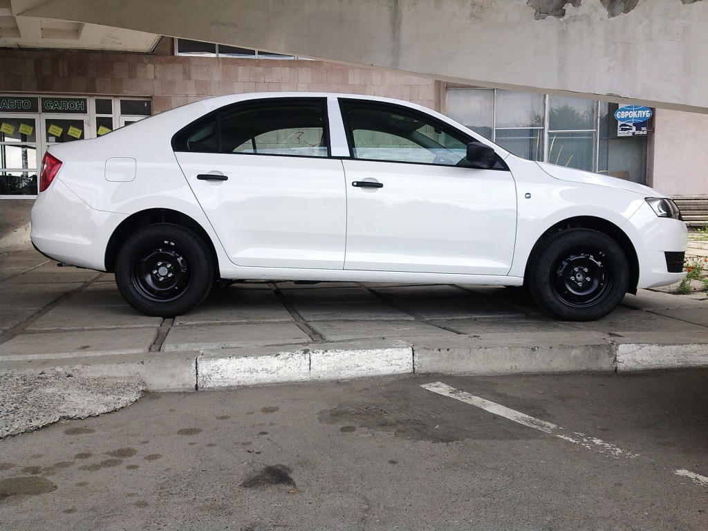 post-64900-0-68472800-1377226826_thumb.jpost-64900-0-18088500-1377226843_thumb.jpost-64900-0-90701500-1377226862_thumb.j Таким я побачив свій Рапід після 3-х місяців очікування. Білою плівкою затягнули все, що можна. Навіть середні стійки. На пороги нанесено антигравійне покриття і наклеєна бронеплівка. Після оглядин замовив бризговики (1000 грн.), сигналізацію Циклон (2000 грн.), та мультилок Констракт на важіль передач (2000 грн.), а також реєстрацію в ДАІ на місці в салоні (5200 грн.).... А сам на наступний ранок поїхав на море.....